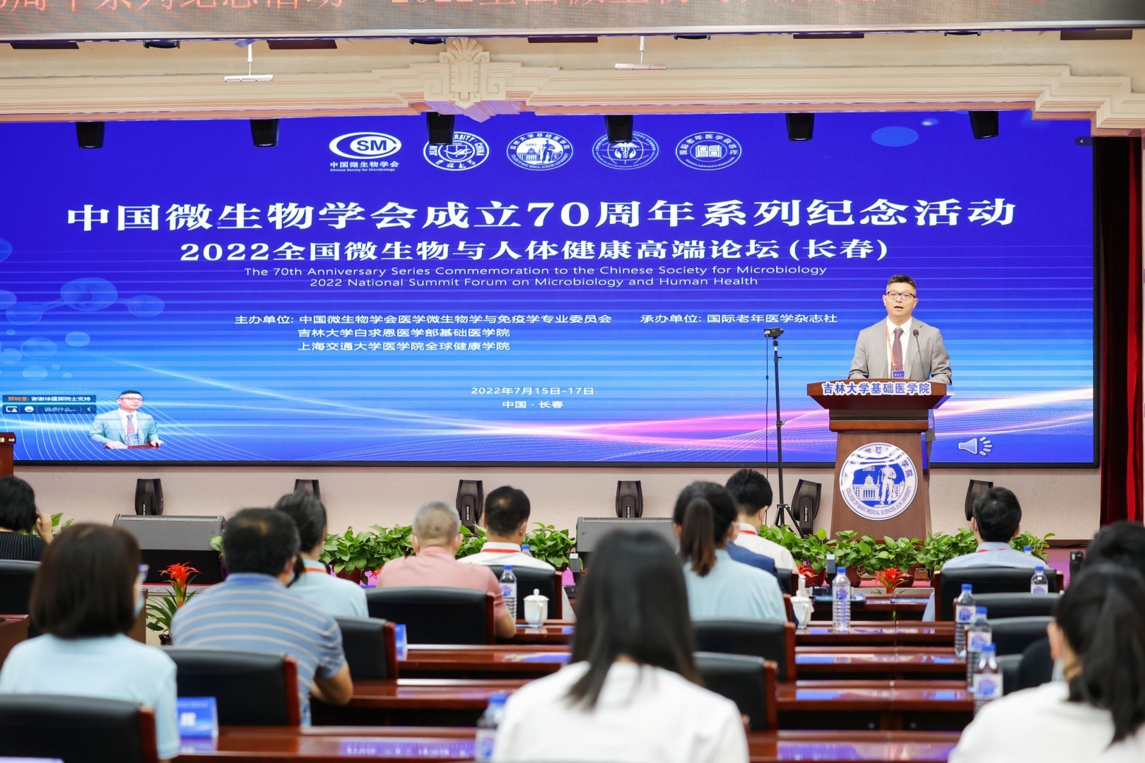 2022年7月15日—17日,在中国微生物学会成立70周年之际,由中国微生物学会医学微生物学与免疫学专业委员会、mg冰球突破豪华版试玩网站及上海交通大学医学院全球健康学院共同主办,国际老年医学杂志社承办的2022全国微生物与人体健康高端论坛在mg冰球突破豪华版试玩网站举办。试玩冰球突破mg网站副校长王利锋出席论坛开幕式并致辞,mg冰球突破豪华版试玩网站院长、中国微生物学会副主任委员王放主持论坛开幕式。来自全国各大专院校、科研院所的代表共计300余人次以线上、线下相结合的方式参加了本次活动。